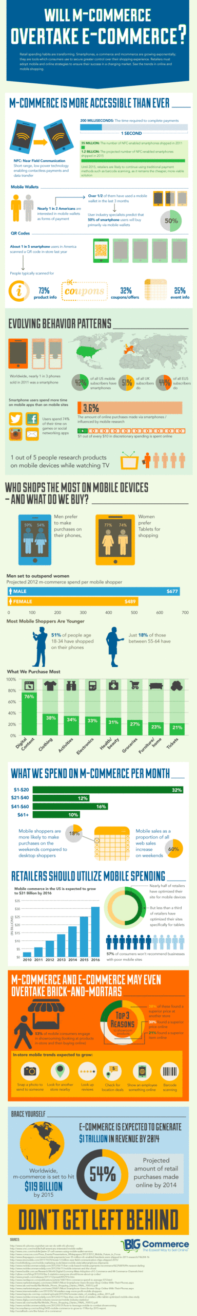 They’ve drawn together numbers surrounding the migration from conventional e-commerce to mobile commerce (m-commerce). Noting the massive rise in smartphones and an increased enthusiasm for online payments BigCommerce ask, will m-commerce soon overtake e-commerce? Their conclusions may surprise: